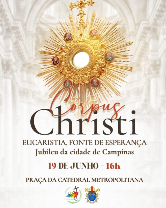 EM 2025 – devido ao “Jubileu de Esperança”, a solenidade de CORPUS CHRISTI foi realizada na praça em frene à Catedral, com a procissão até a Basílica NS Carmo.