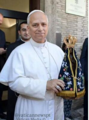 Papa Leão XIV com a imagem de Nossa Senhora Aparecida Nas redes sociais do Vaticano, foi compartilhada a foto acima com a seguinte frase: