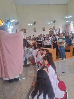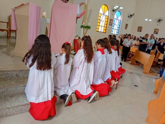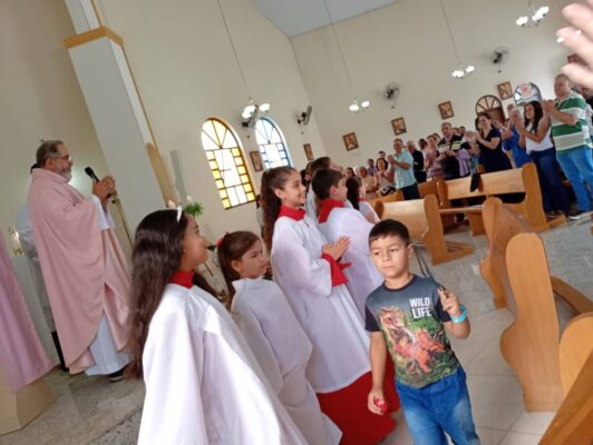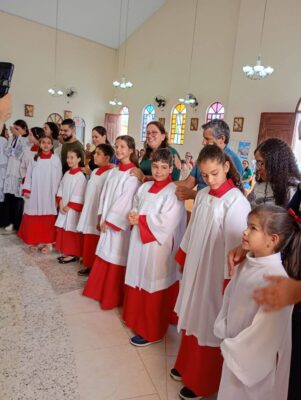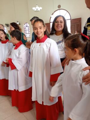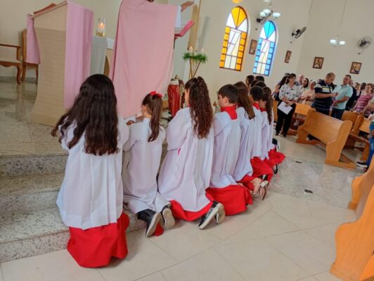 COM MUITA ALEGRIA MANIFESTADA NAS FAMILIAS, NA PARÓQUIA … ESTE ANO É REALIZADA A INVESTIDURA E RENOVACAO… DE NOSSOS ACÓLITOS E COROINHAS, QUE PARTICIPARAM DE PROFUNDA PREPARAÇÃO, ORGANIZAÇÃO, ENTROSAMENTOS…
