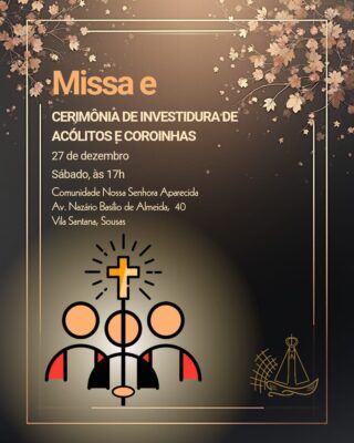 Blog,Fotos 2025-Comunidade NS APARECIDA. Investidura Coroinhas Posted on 27 de dezembro de 2025 by Mário Maróstica 27 dez Comunidade NS APARECIDA Missa e Investidura Coroinhas e Acólitos Mário Maróstica Entender: Para receber indulgência Plenária… 2025: Mensagem Natal
