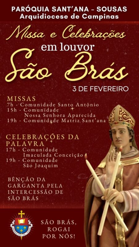 DIA SÃO BRÁS – BÊNÇÃO GARGANTAS Veja Locais e horários Fotos recebidas da Comunidade S Joaquim e S Roque